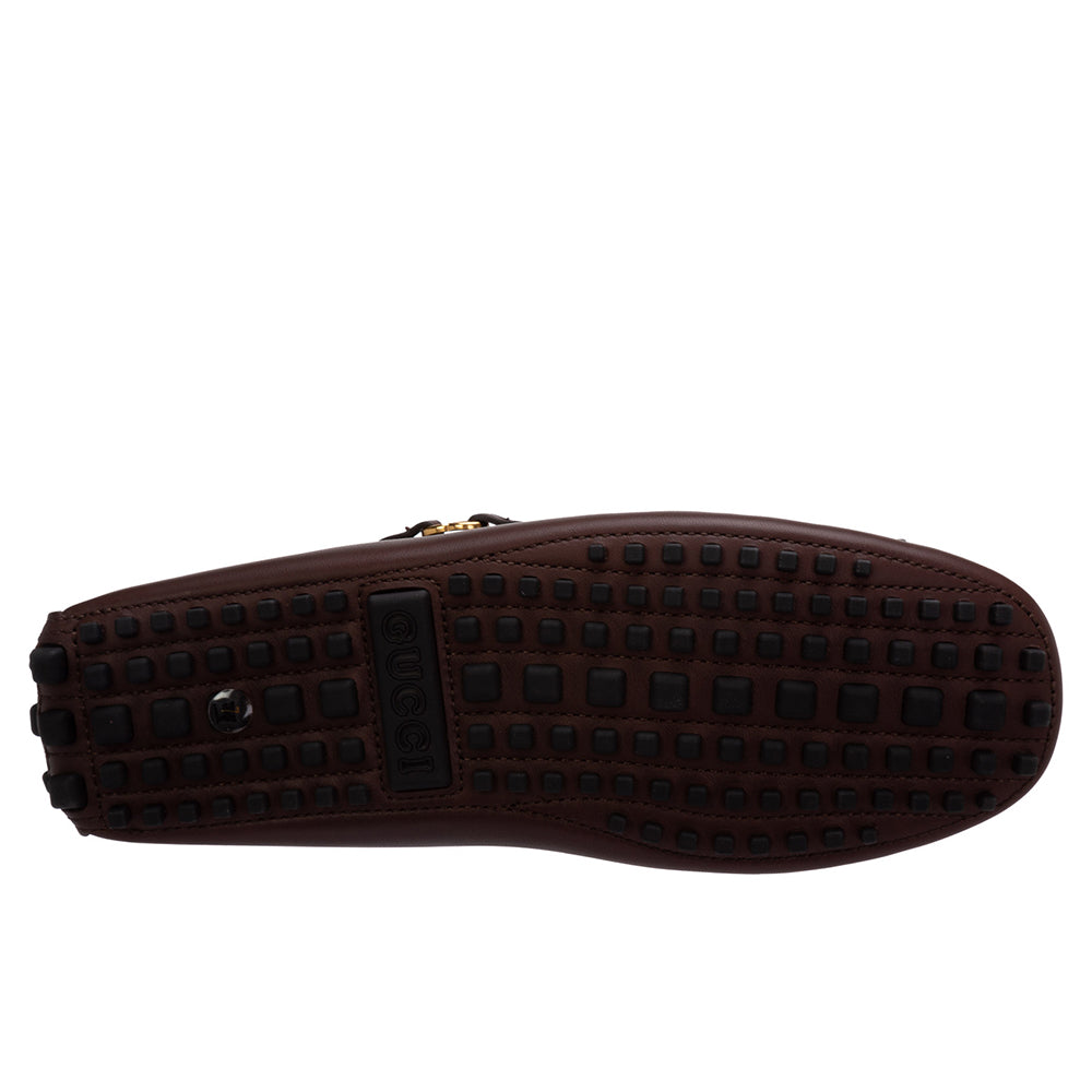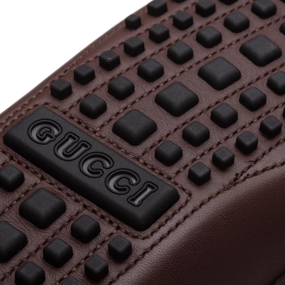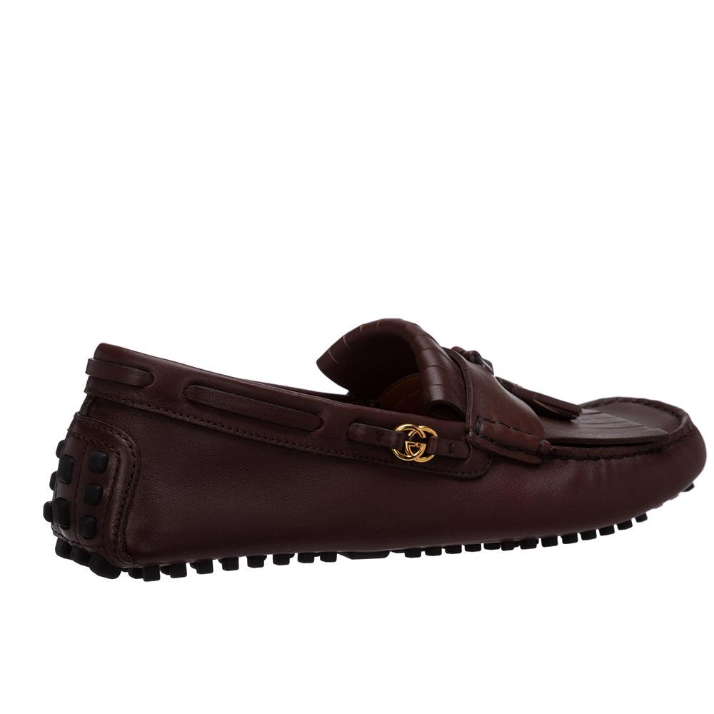 Gucci Mocasín de cuero con flecos GG entrelazados para hombre Marrón