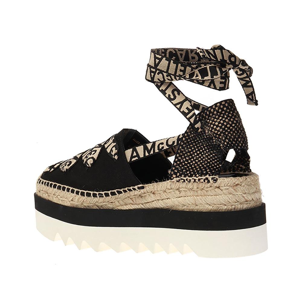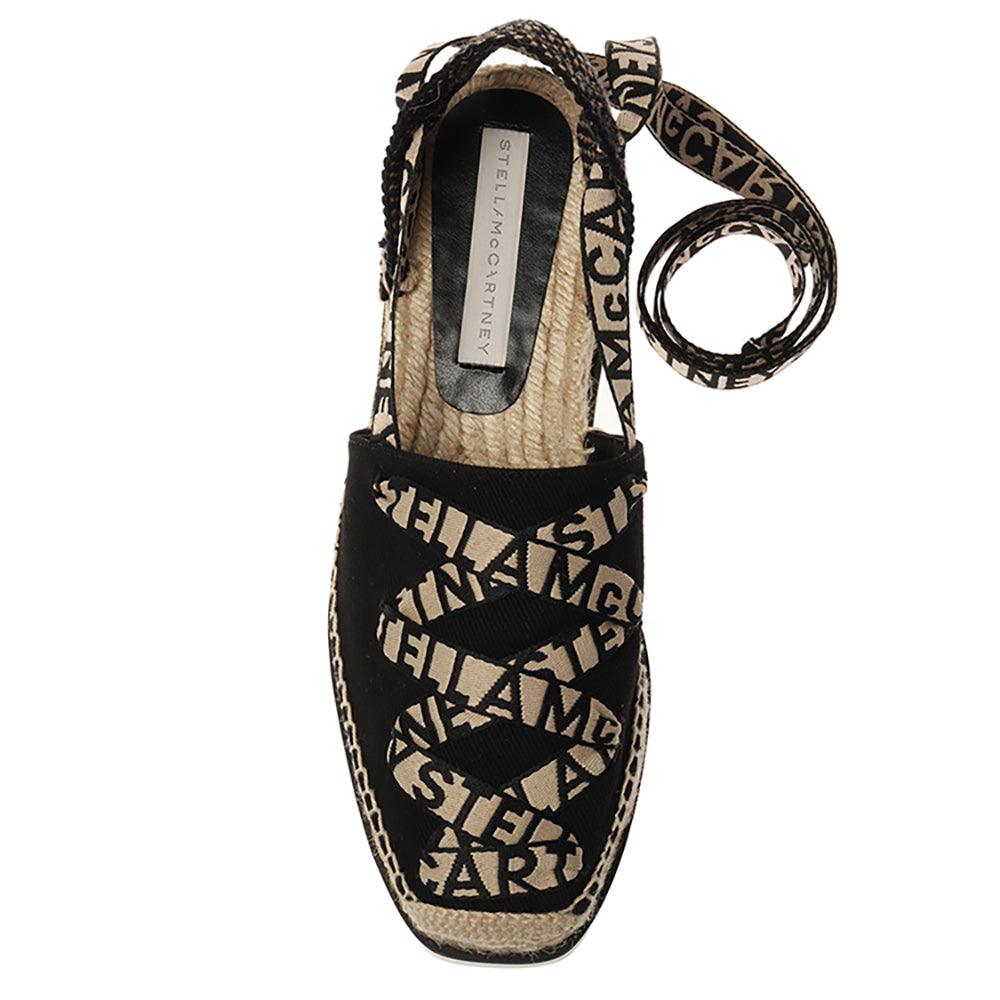 Las alpargatas con plataforma Stella McCartney Gaia cuentan con una suela de plataforma con borde de sierra en capas y cordones de cinta con el logo que van desde la punta hasta el tobillo. Parte superior de algodón. Plataforma plana de aproximadamente 80 mm/ 3 pulgadas. Todos los zapatos de Stella McCartney están hechos de materiales distintos del cuero como parte de su espíritu libre de crueldad animal. Hecho en España. 100% Autenticidad Garantizada. Nuevo en caja.