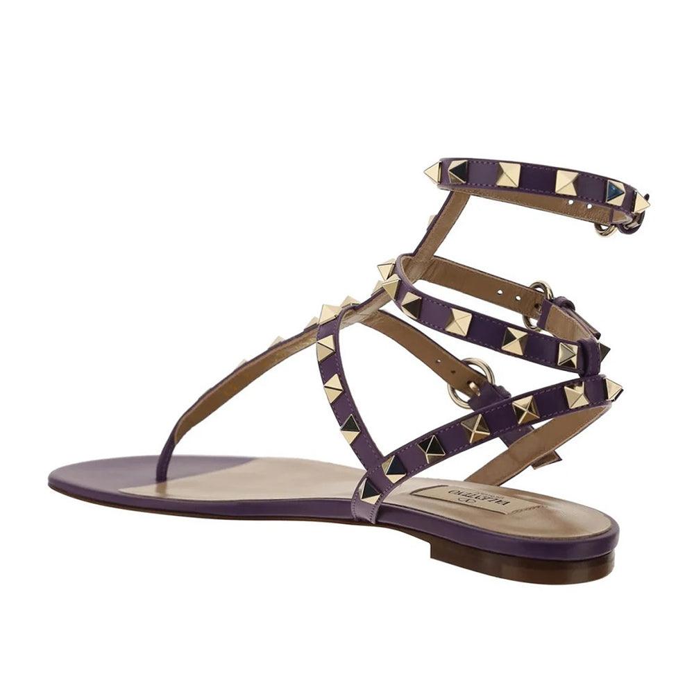 Valentino Sandalias planas Rockstud con tiras para mujer en color morado