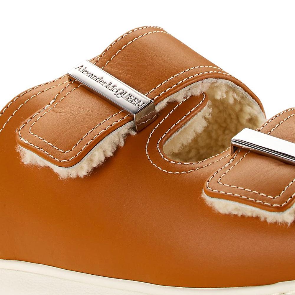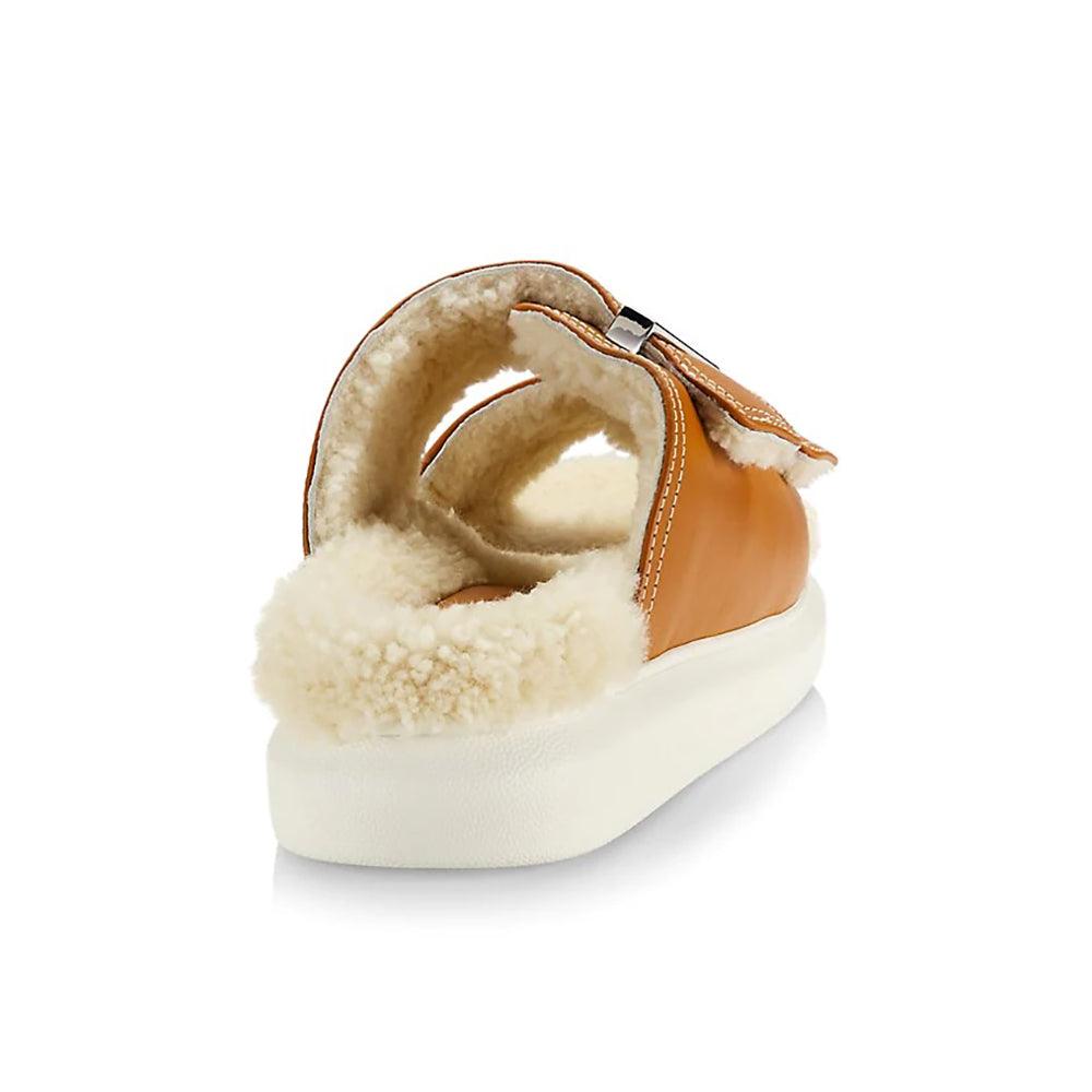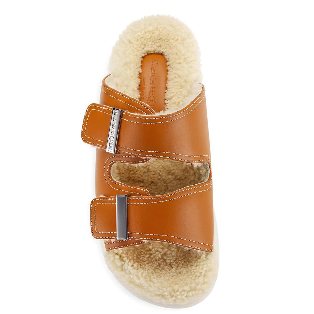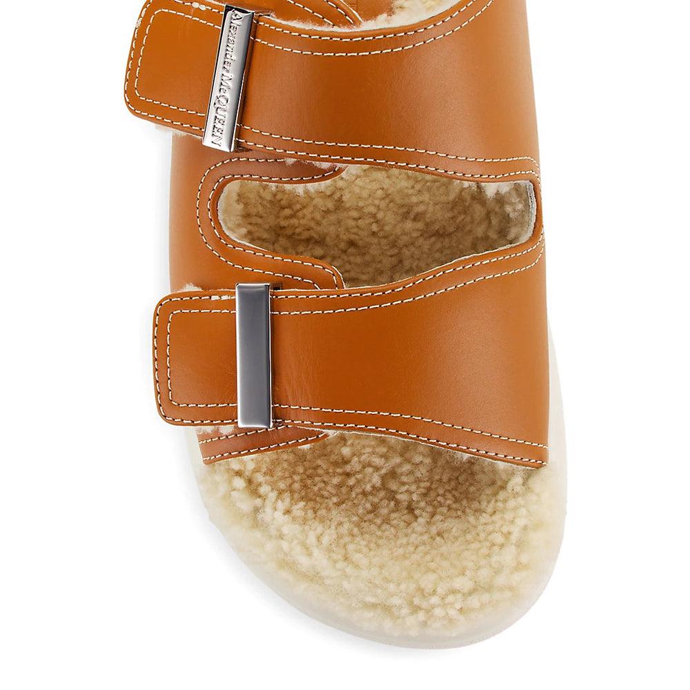 Alexander McQueen Women's Hybrid Shearling Leather Slide Sandals in Brown