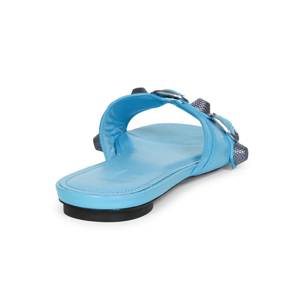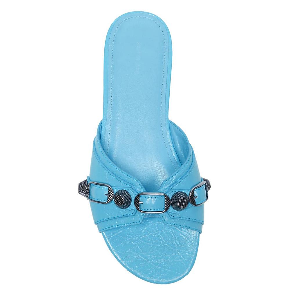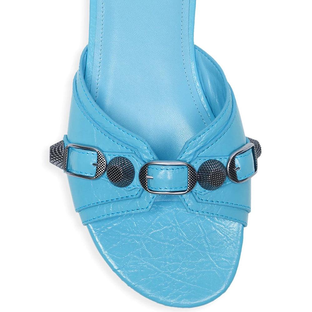 Balenciaga Women's 'Cagole' Leather Sandal in Cyan Blue