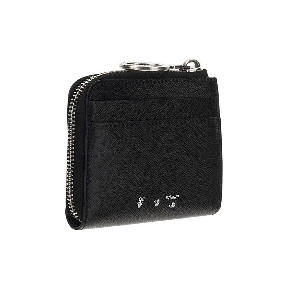 Off-White Unisex Striped Pattern Leather Zip Wallet in Black