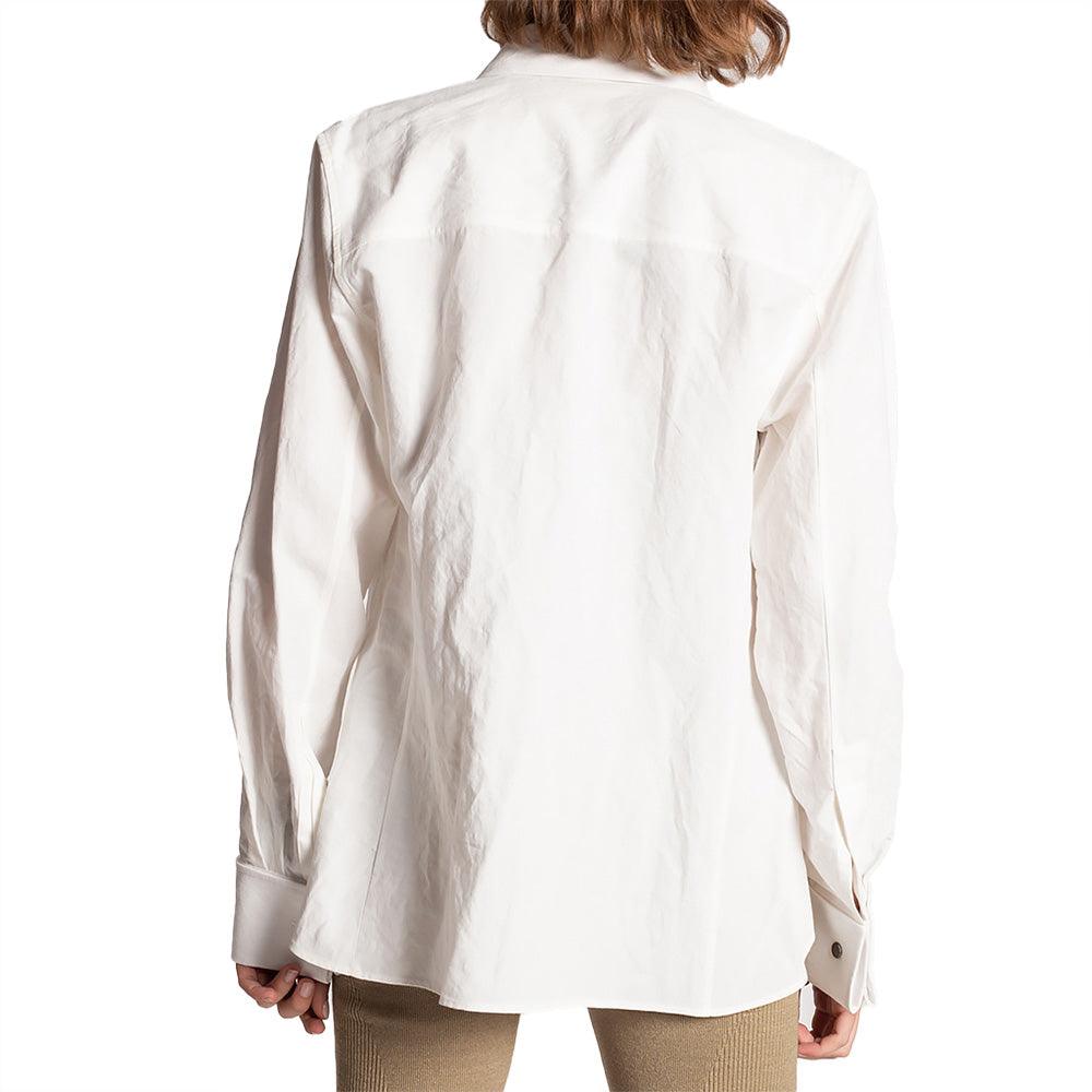 Saint Laurent Women's Cotton Linen Blend Boyfriend Dress Shirt in Cream
