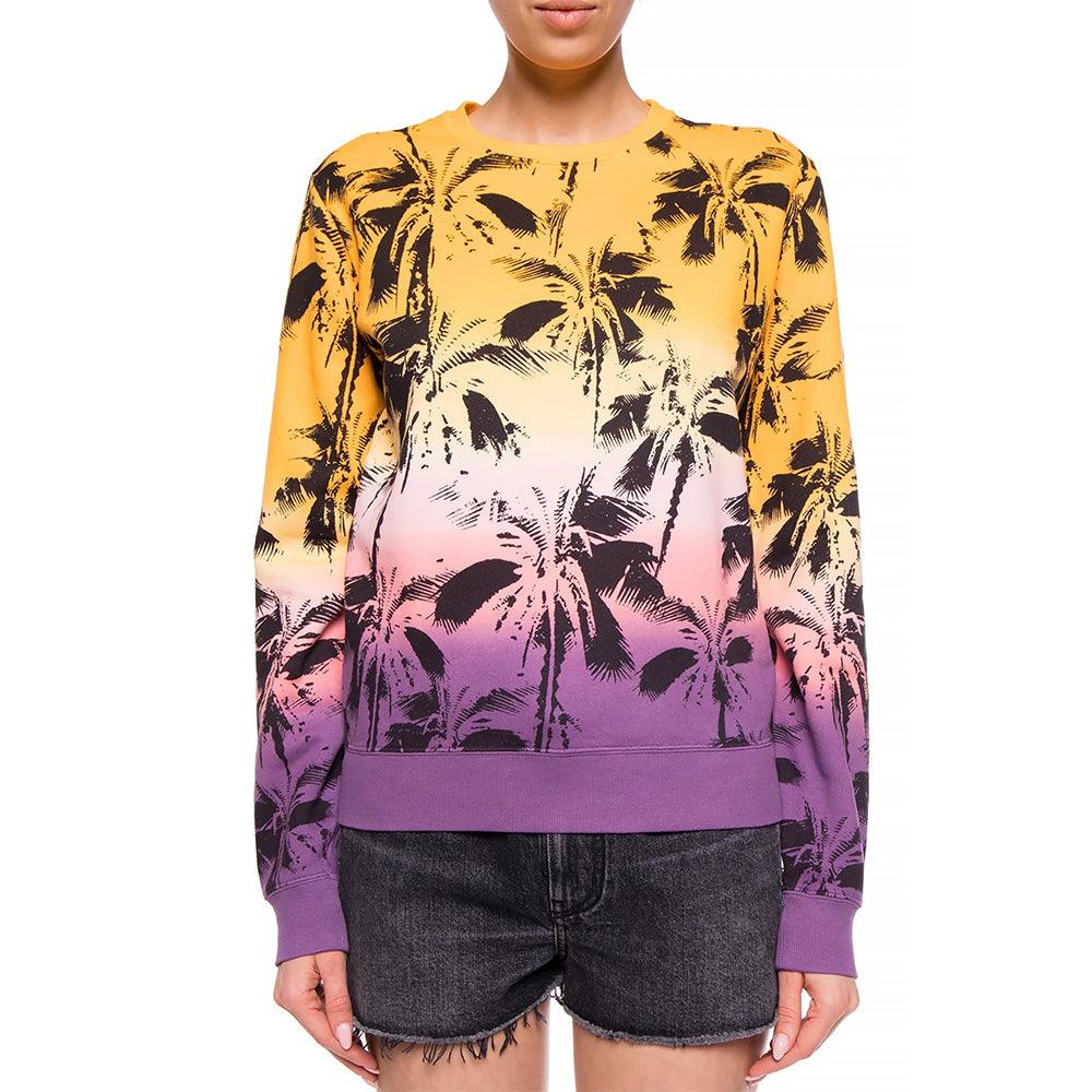 Saint Laurent Women's Cotton Palm Tree Graphic Crewneck Sweatshirt Pink Orange